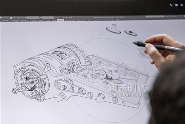 帕玛强尼BUGATTI TYPE 390设计手稿 一宗最: 12°铰接式表壳 Bugatti Type 390的表壳设计源于布加迪Chiron的流体曲线。表壳围绕气缸结构打造,可围绕其驱动轴旋转12°。此项技术正在申请专利,可谓是腕表设计领域的一个大胆创新。