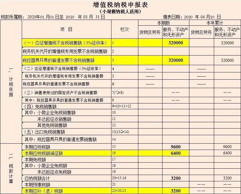增值税小规模纳税人 3%减按1%,增值税申报表如何填报?