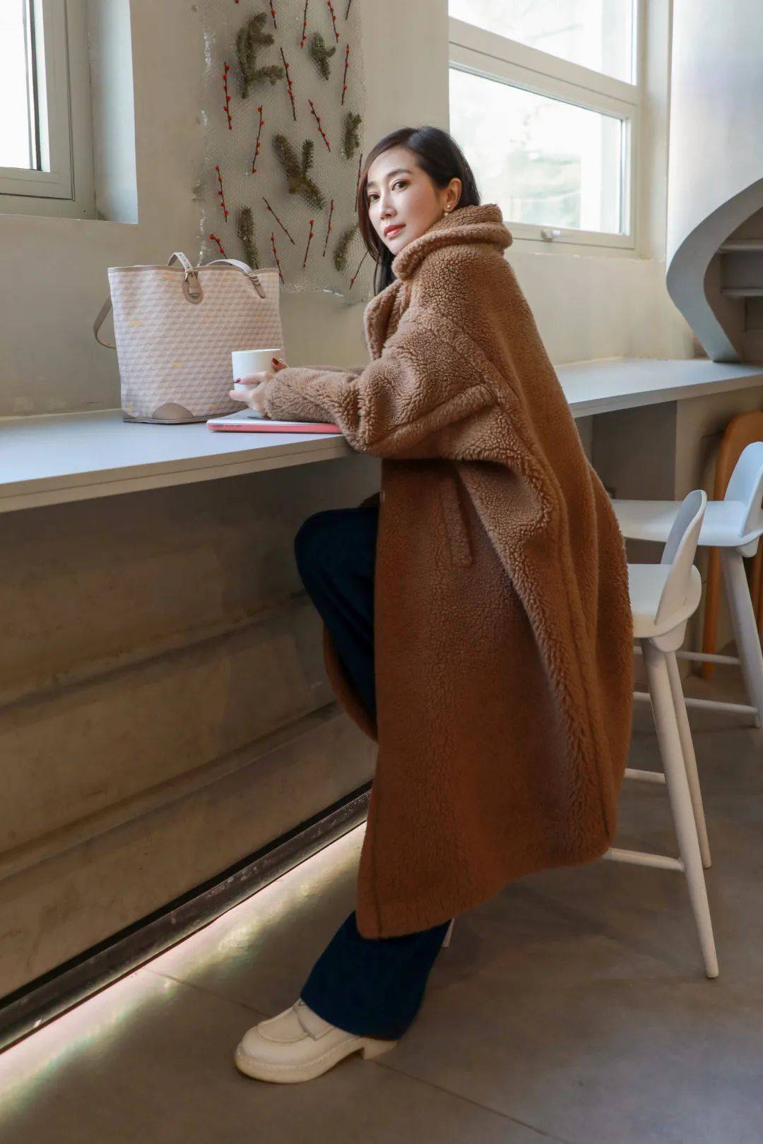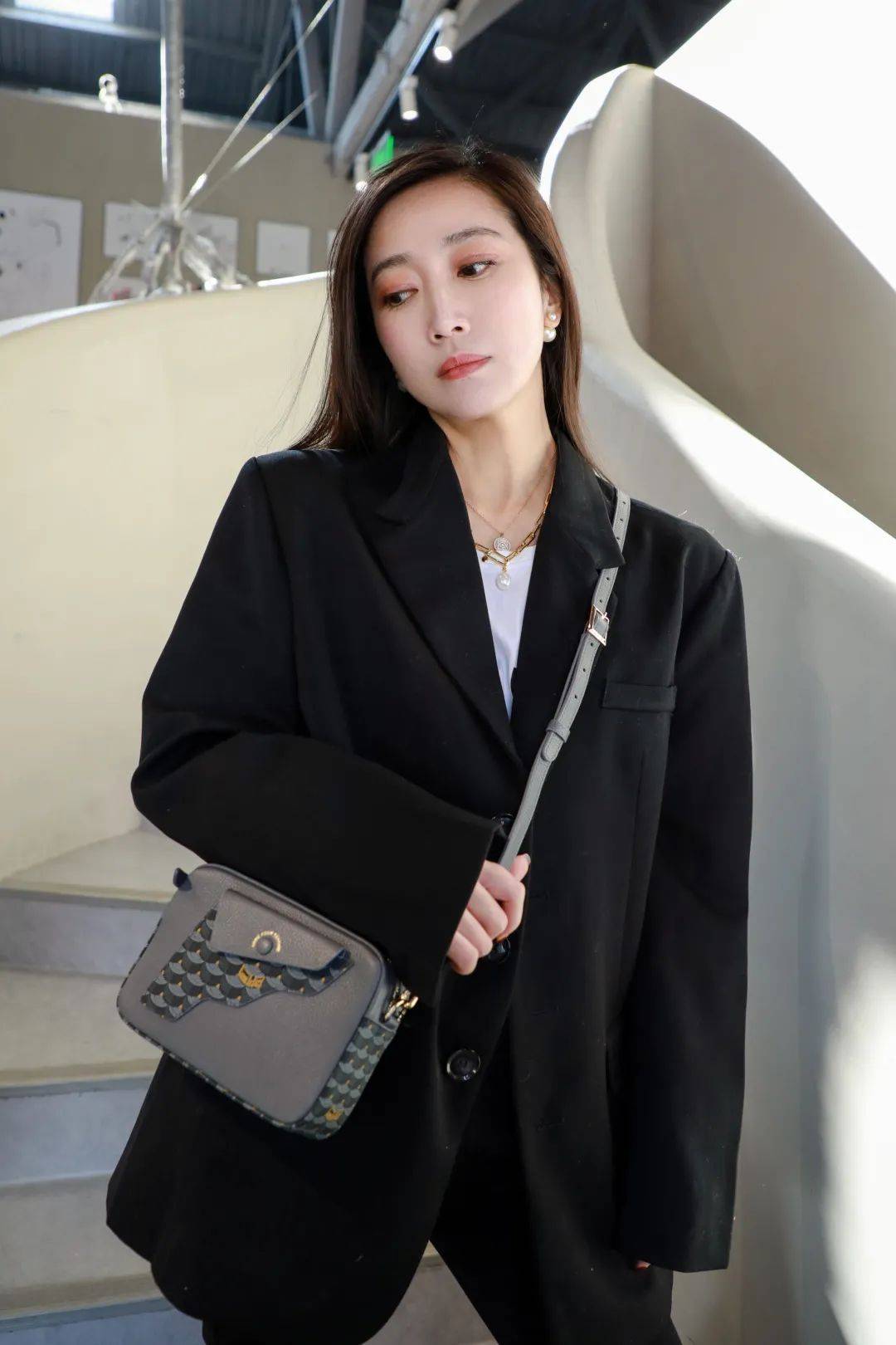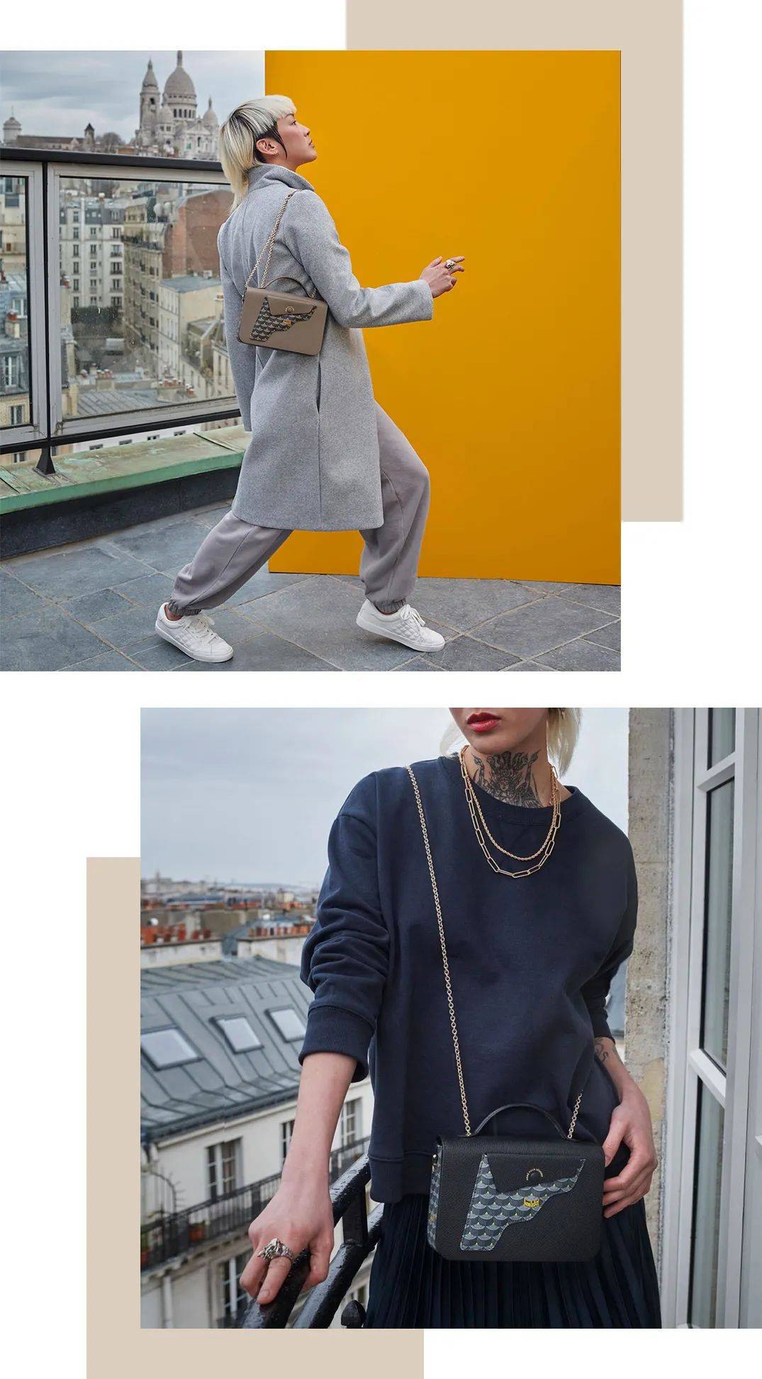 我上身的是更加沉稳的灰色,耐看又不挑人,各种大衣外套它都能hold住,入春之后搭配针织开衫、牛仔外套也很chic。