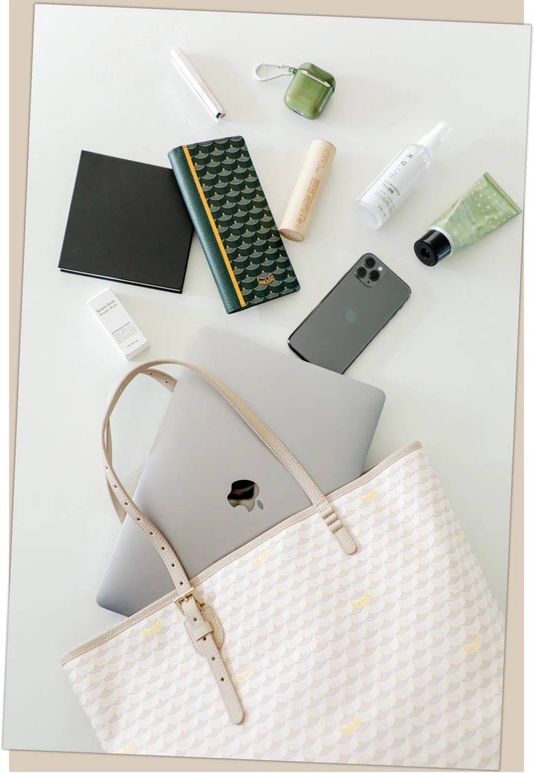 除了能装万物的32号,27号也是比较日常实用的size,整体更加轻盈小巧,大小和11寸电脑差不多,装下iPad、充电宝和补妆产品妥妥的。经常出差或短途旅行的话可以选容量更加优秀的37号/41号托特包。