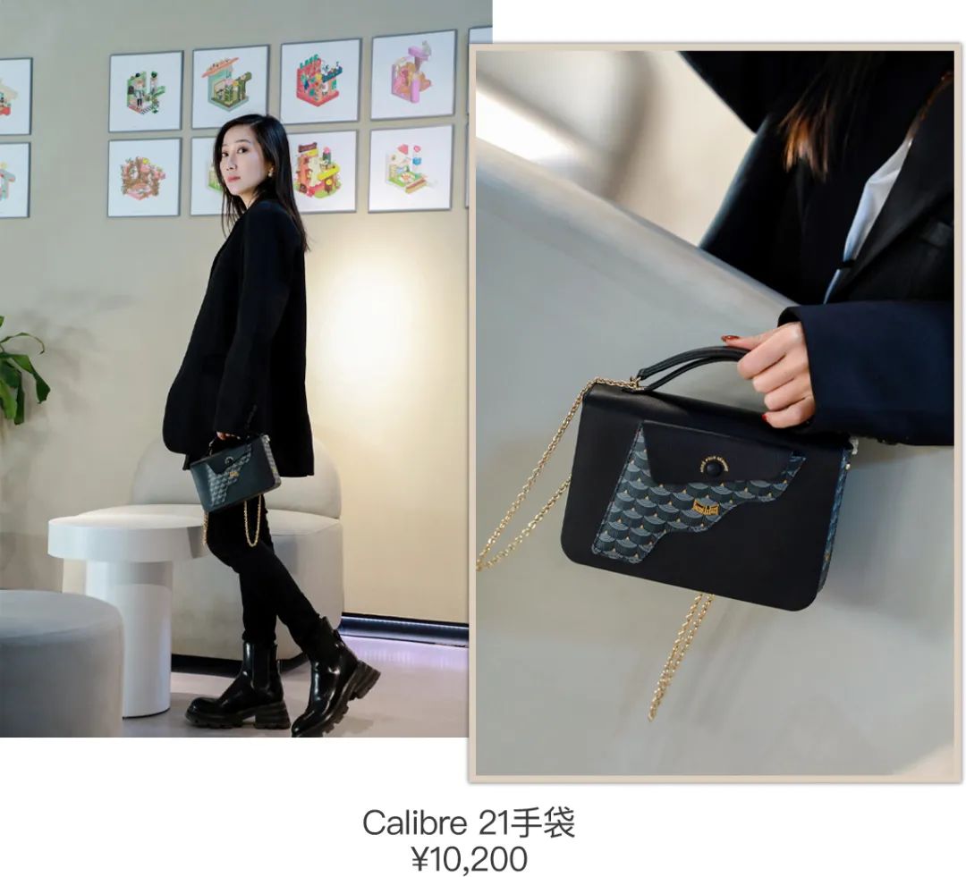 Calibre 21手袋增加了链条和手柄设计,不仅设计上增添精致时髦度,还能当腋下包来背,造型可塑性更强。
